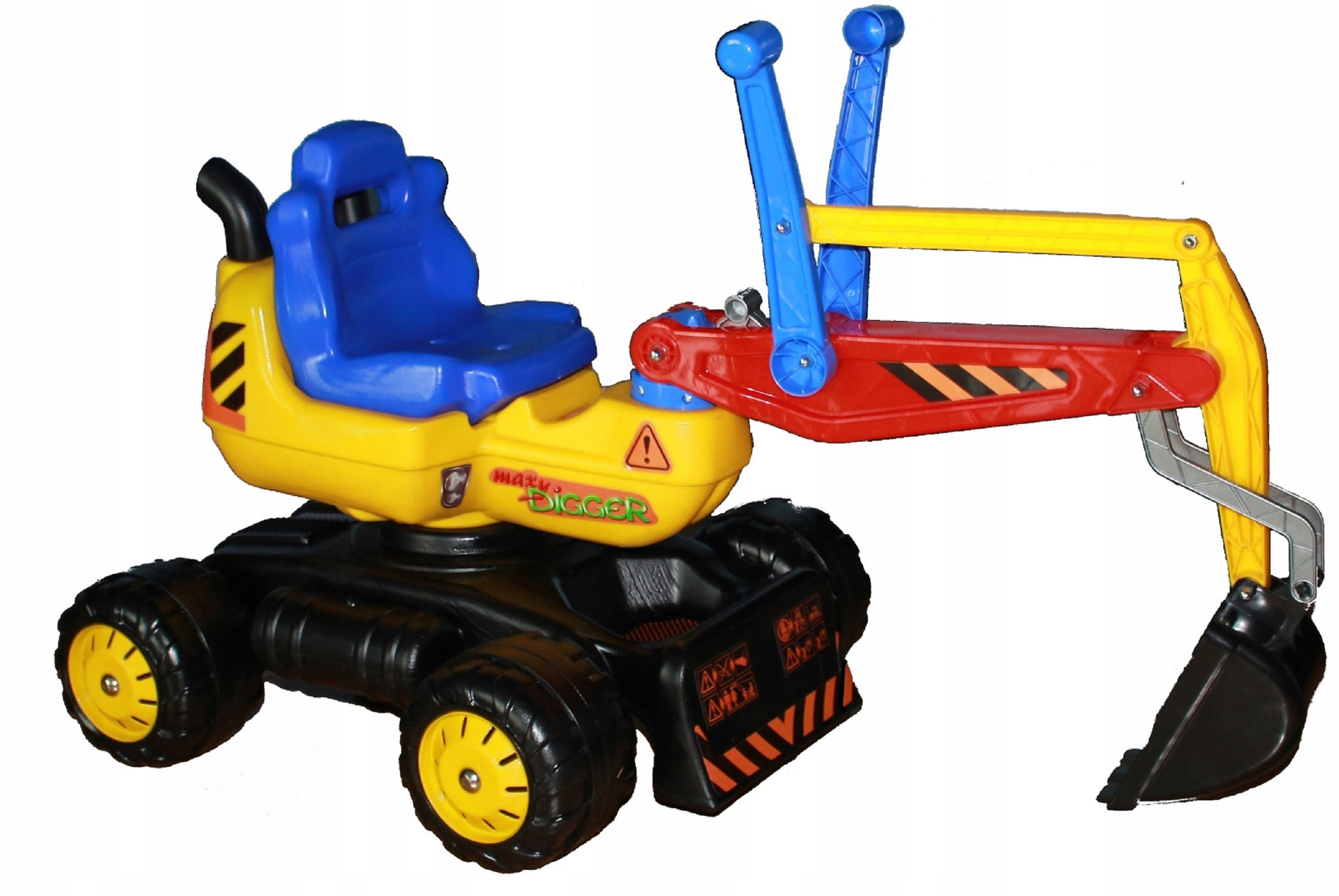 Керування здійснюється за допомогою двох важелів - один відповідає за роботу ковша, інший - за управління рукояткою. Додаткове обладнання включає фіксатор руки, який фіксує її в піднятому положенні. Зручне та велике сидіння забезпечує стабільне положення дитини. Ніжки підтримуються нековзкими підніжками. Крім того, дитина може рухати колеса ногами, змушуючи їх рухатися під час гри. В основі є практичний відсік для зберігання дрібниць. Велика основа і широко розташовані колеса іграшки забезпечують чудову стабільність під час гри. Ручка сидіння сприяє зручному перенесенню екскаватора. Завдяки роботі дитина розвиває ручні навички, покращує концентрацію та розвиває уяву та організованість. Іграшка ідеально підходить для домашнього використання - ви можете використовувати її, наприклад, для складання кубиків, але справжня розвага починається в пісочниці, де ви можете сповна використовувати її можливості. Самоскид ідеально доповнить набір.