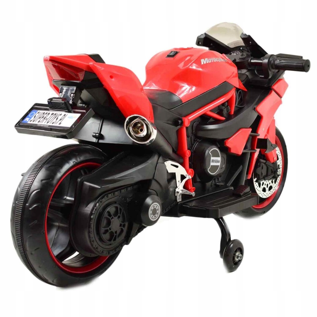 Панель зі звуками (звуки запуску мотоцикла) з USB та Aux входом та освітленням автомобіля (світильники та світиться колеса) розважається для диверсифікації. групи. Великі колеса забезпечують комфорт водіння, крім того, двигун має бічні колеса з можливістю розбирання. Символ каталогу моделі: