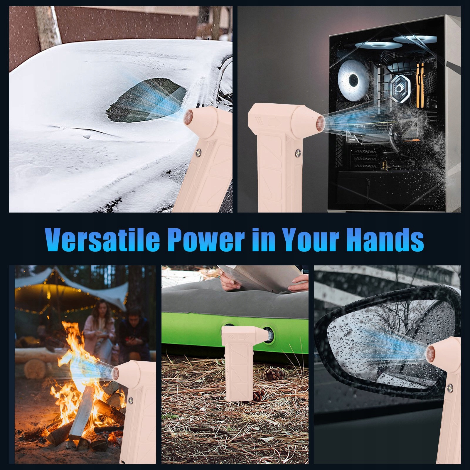 - Оснащена потужним безщірним двигуном, кілька режимів вентиляції, що легко вирішують проблеми з очищенням/охолодженням. Наш супер турбо вентилятор підходить для різноманітних завдань, включаючи охолодження, пилосос клавіатури, запалювання гриль, надувну подушку, сніг, дме листя тощо. Експлуатується спокійно, що дозволяє очистити свій простір, не турбуючи інших або не викликаючи порушення шуму.