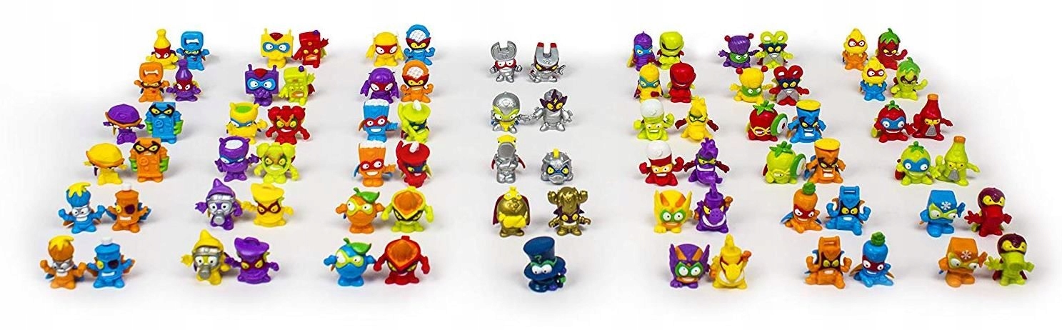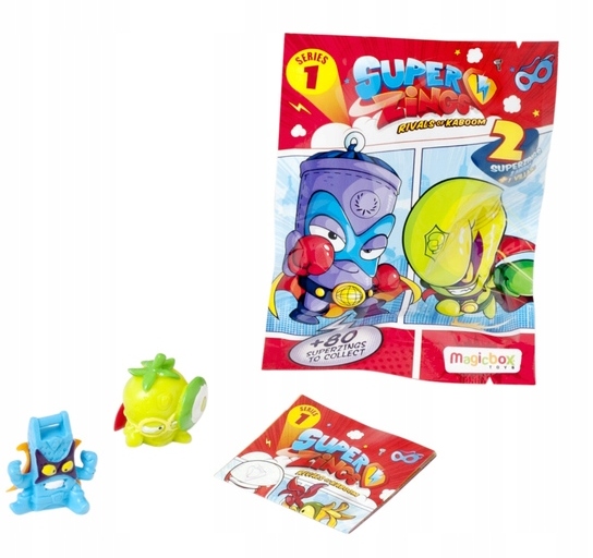 У 1 -й серії є понад 80 стадів для збору та збору! Супер Зінгс - це повсякденні предмети, перетворені на супергероїв та супер лиходіїв, які стикаються між собою під час різних пригод у місті Кабум. Фігурки виготовлені з гуми і мають висоту близько 2,5-4 см.