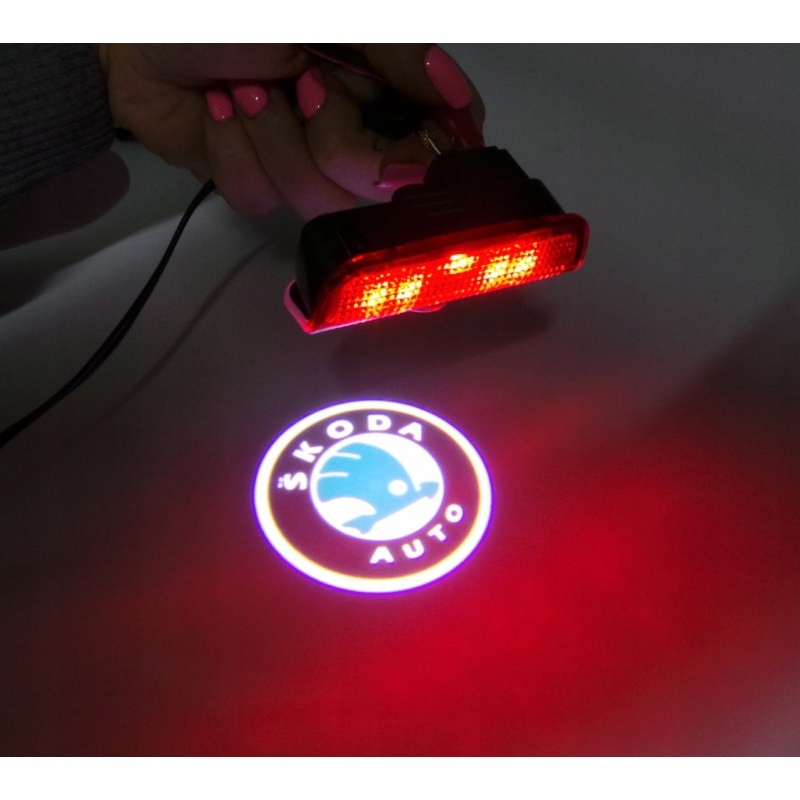Змінна світлодіодна лампа для Skoda Superb - двері з логотипом Skoda.