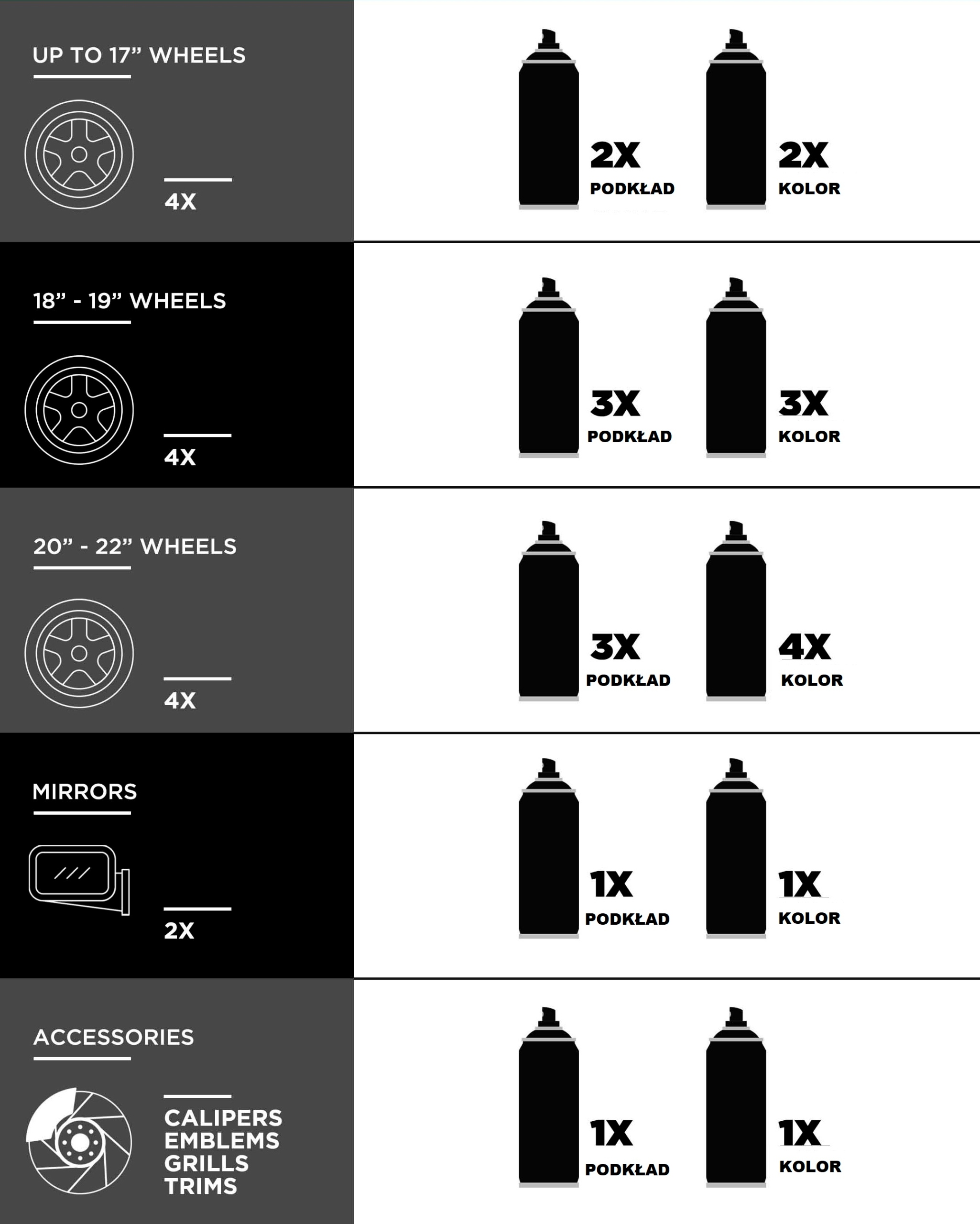 ВИСОКОГЛЯНЕВЕ ПОКРИТТЯ - Формула Superwrap імітує зовнішній вигляд високоякісного порошкового покриття, залишаючись повністю знімним, як покриття на основі гуми. Ця вінілова плівка, що розпилюється, надає дискам, дзеркалам, декоративним накладкам, емблемам, решіткам і дрібним елементам абсолютно новий, ексклюзивний вигляд без використання традиційних лаків.