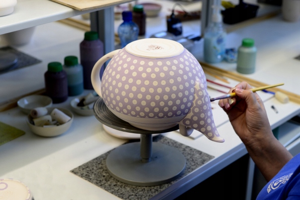 Наступним кроком є створення візерунків вручну або декорування методом штампу. Потім на вироби наноситься блискуча глазур. Для цього використовуються спеціальні фарби. Це необхідно для захисту кераміки та надання їй привабливого вигляду.