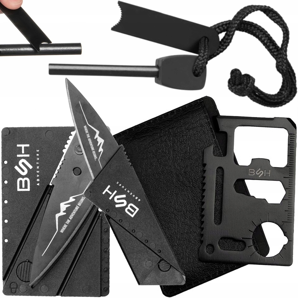 SURVIVAL CAMPING SET MAGNESIUM FIRST STARTING KNIFE FOLDING CARD 11 IN 1