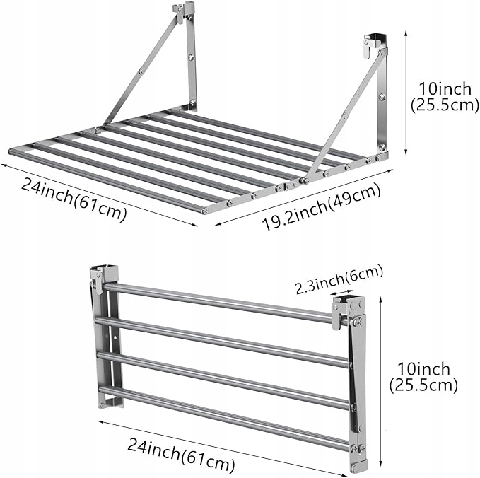 - Сушарка для економії одягу: компактна та складна конструкція, ширина після розгортання становить 48,5 см / 19,1 дюйма, а після складання лише 9,4 см / 3,7 дюйма, що дозволяє задовольнити потреби сушіння в обмеженому просторі.