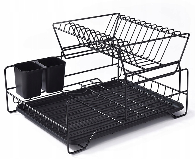 ЧОРНА СУШКА ДЛЯ ПОСУДУ З ПІДНОШЕННЯМ ТА КОНТЕЙНЕРАМИ ДЛЯ СТОЛОВОГО ПРИБОРУ