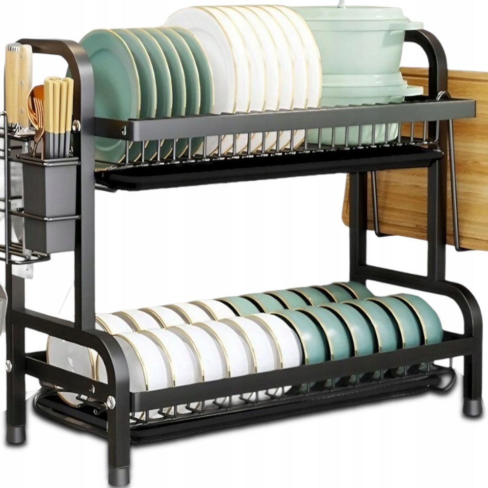 Сушарка для посуду на два рівні зливних пластин для столових приладів + тримач дошки