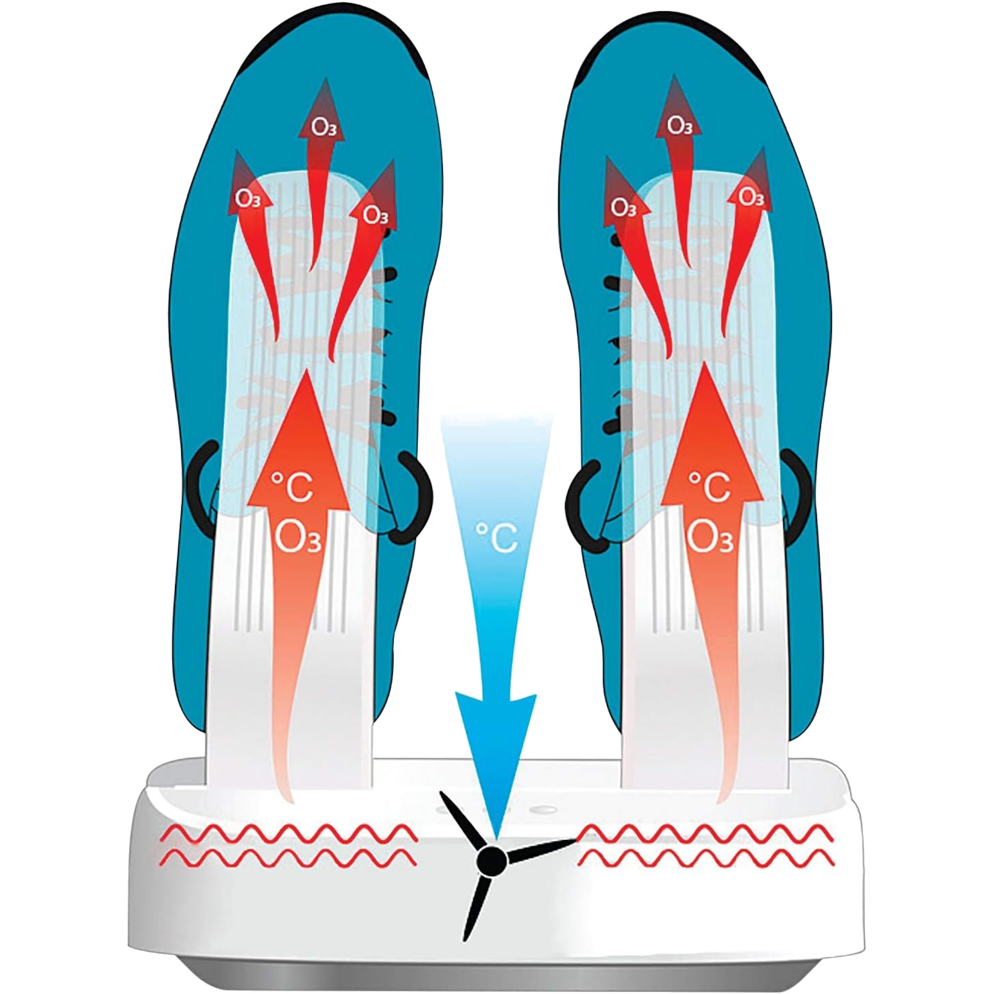 2 . Дезінфікує взуття за допомогою технології активного кисню шляхом введення озону всередину, який вбиває віруси, бактерії та грибки, які, серед іншого, причина неприємного запаху.
