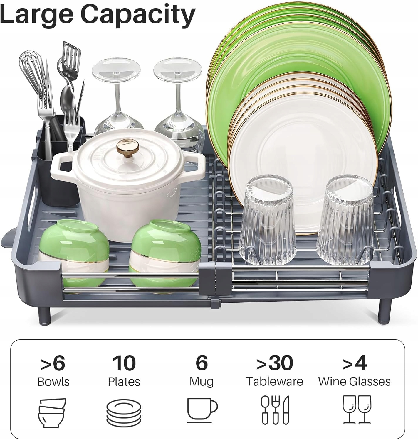 Блюдо Sayzh ідеально підходить для повсякденного використання на кухні. Ідеально підходить для кожного будинку, незалежно від його розміру. Його можна легко розгорнути, щоб збільшити потужність, а коли вона не використовується, його можна скласти, що економить місце. Це чудове рішення для людей, які цінують порядок та функціональність на кухні. Завдяки інноваційній системі водних вод, страви швидко висохають, що дозволяє уникнути неприємних запахів та цвілі.