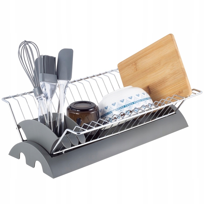 Сучасна сушарка Kamille полегшить висушування вимитих вручну столових приборів і тарілок і захистить кухонну стільницю. У набір також входить ємність для столових приборів і піддон для крапельної води.