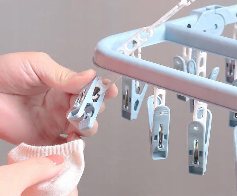 SUSZARKA WIESZAK NA SKARPETKI BIELIZNĘ 32 KLIPSY ŻABKI SKŁADANA KARUZELA