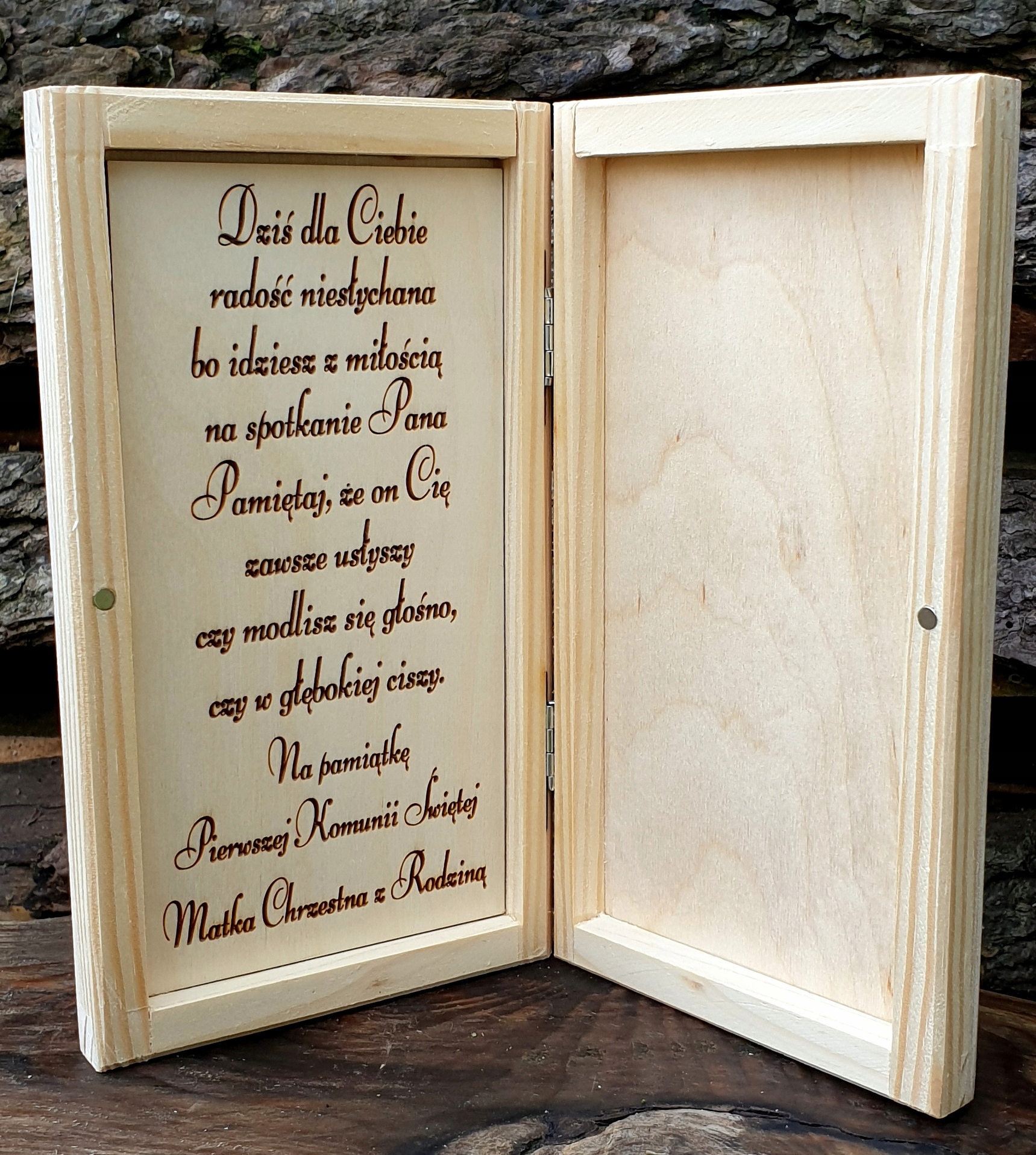 - гравірування на кришці коробки (назва та дата),