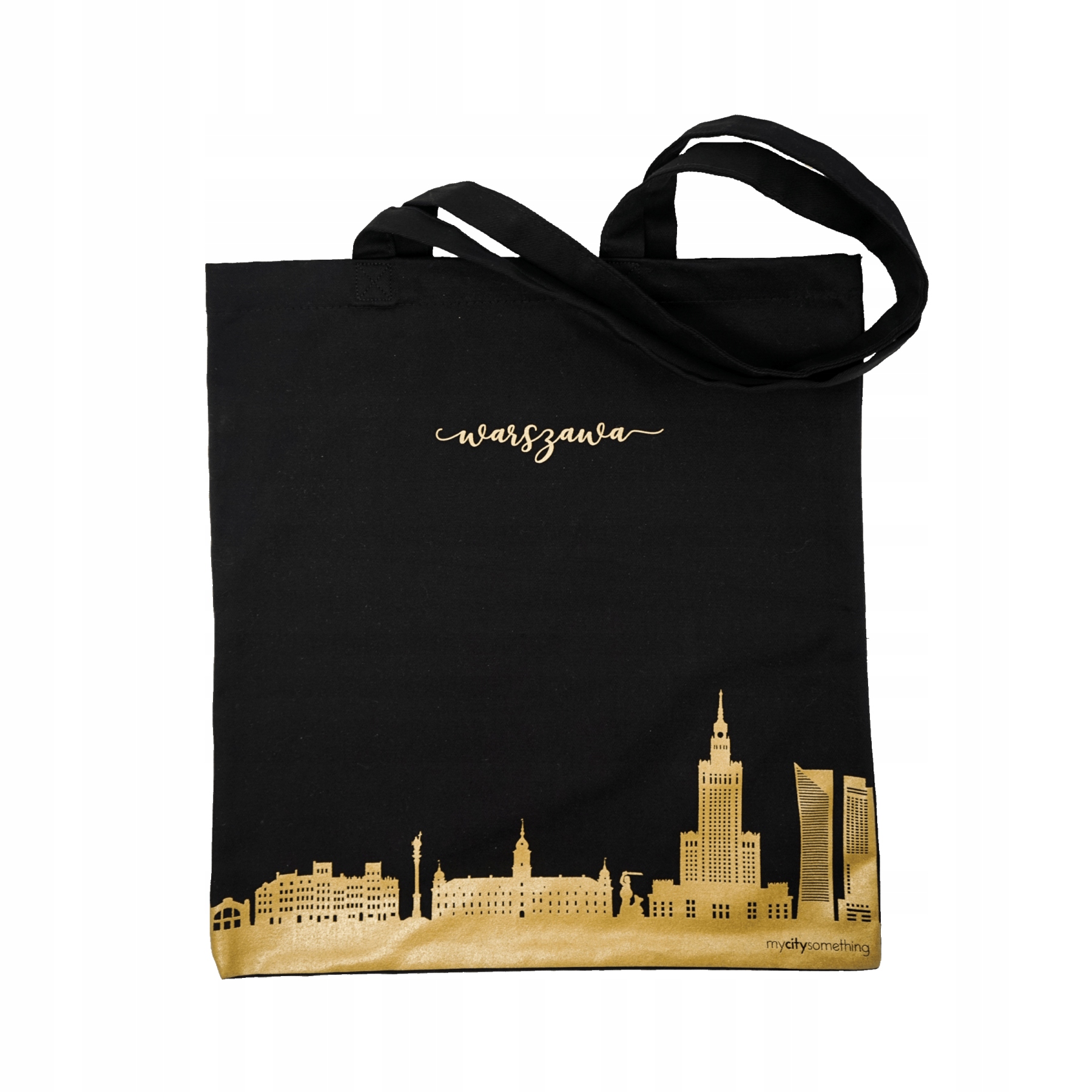 З нашою полотняною сумкою зі зручними ручками кожен шопінг стане легшим! Золотистий, делікатно мерехтливий візерунок, розташований на дні сумки, зображує деякі з найбільш символічних будівель Варшави - Хала Кошиків, багатоквартирні будинки на Староміській площі, колону Сигізмунда, Королівський замок, Русалку, Палац культури та характерні для Варшави хмарочоси.