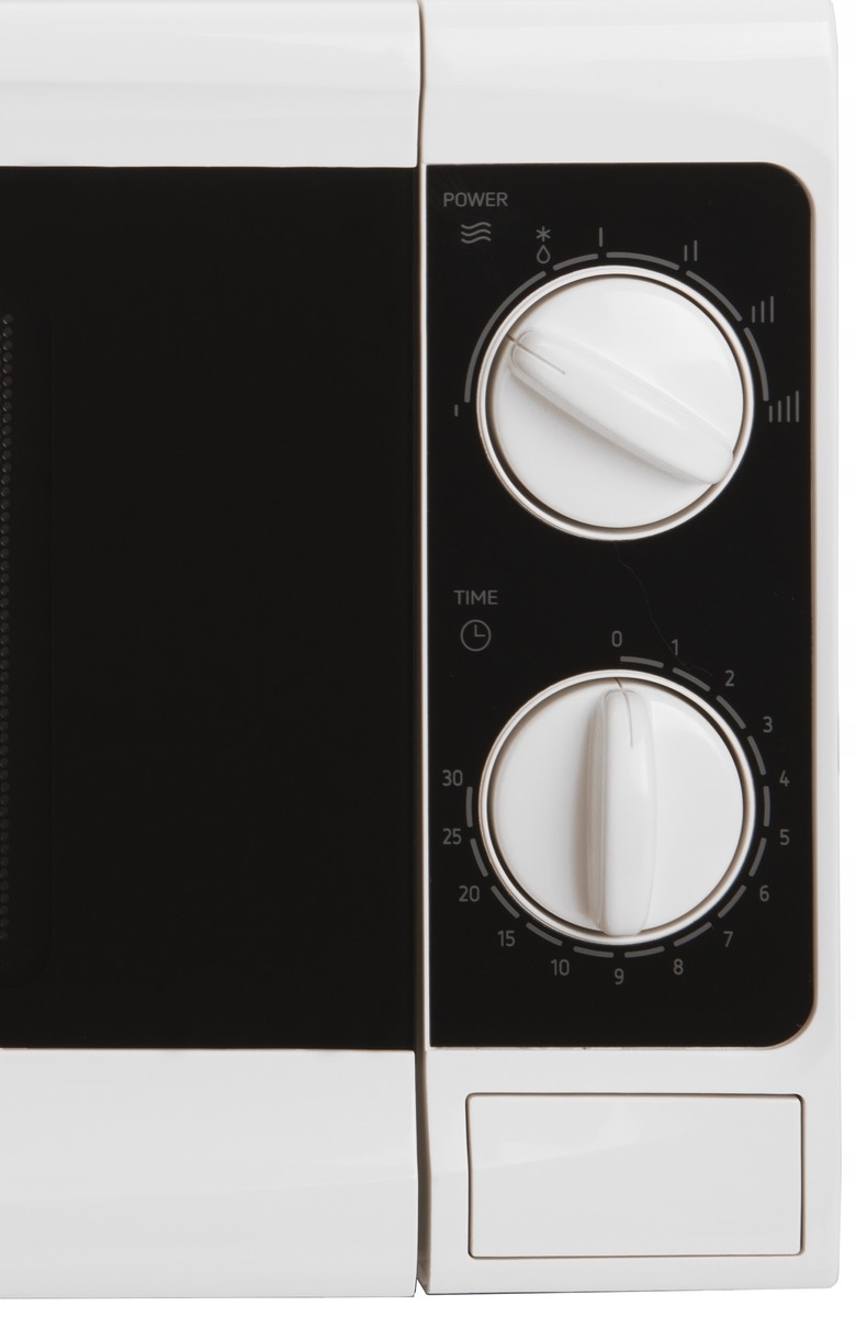 Легко керуйте та не турбуйтеся про складну електроніку! Встановіть час роботи мікрохвильової печі одним рухом за допомогою зручної ручки. Таке максимальне спрощення експлуатації дозволить насолоджуватися працездатністю обладнання тривалий час. Ви можете легко підтримувати його в чистоті, і він має елегантний мінімалістичний дизайн.
