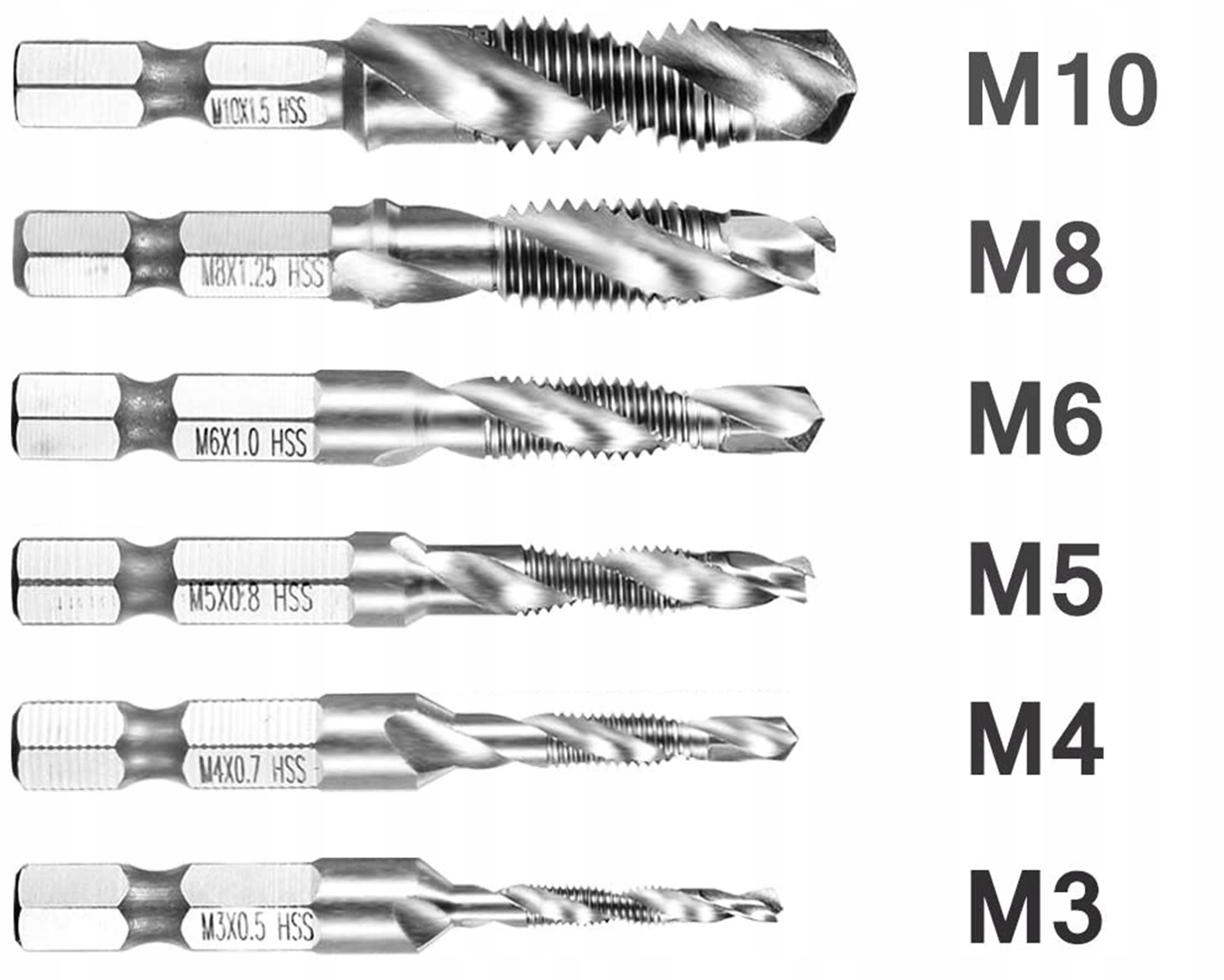 Свердла, призначені для свердління та нарізання різьб у м’яких металах, алюмінієвому листі, пластмасі, міді, сталі, дереві тощо.