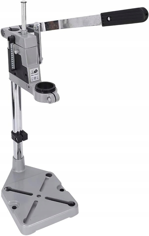 Стійка для дрилі ідеально підходить для використання в магазині та вдома. Міцна колонна і стійка основа з отворами для кріплення лещат забезпечують впевненість і стабільність при свердлінні. Регульована монтажна втулка дозволяє регулювати висоту ручки залежно від робочої висоти та довжини свердління.