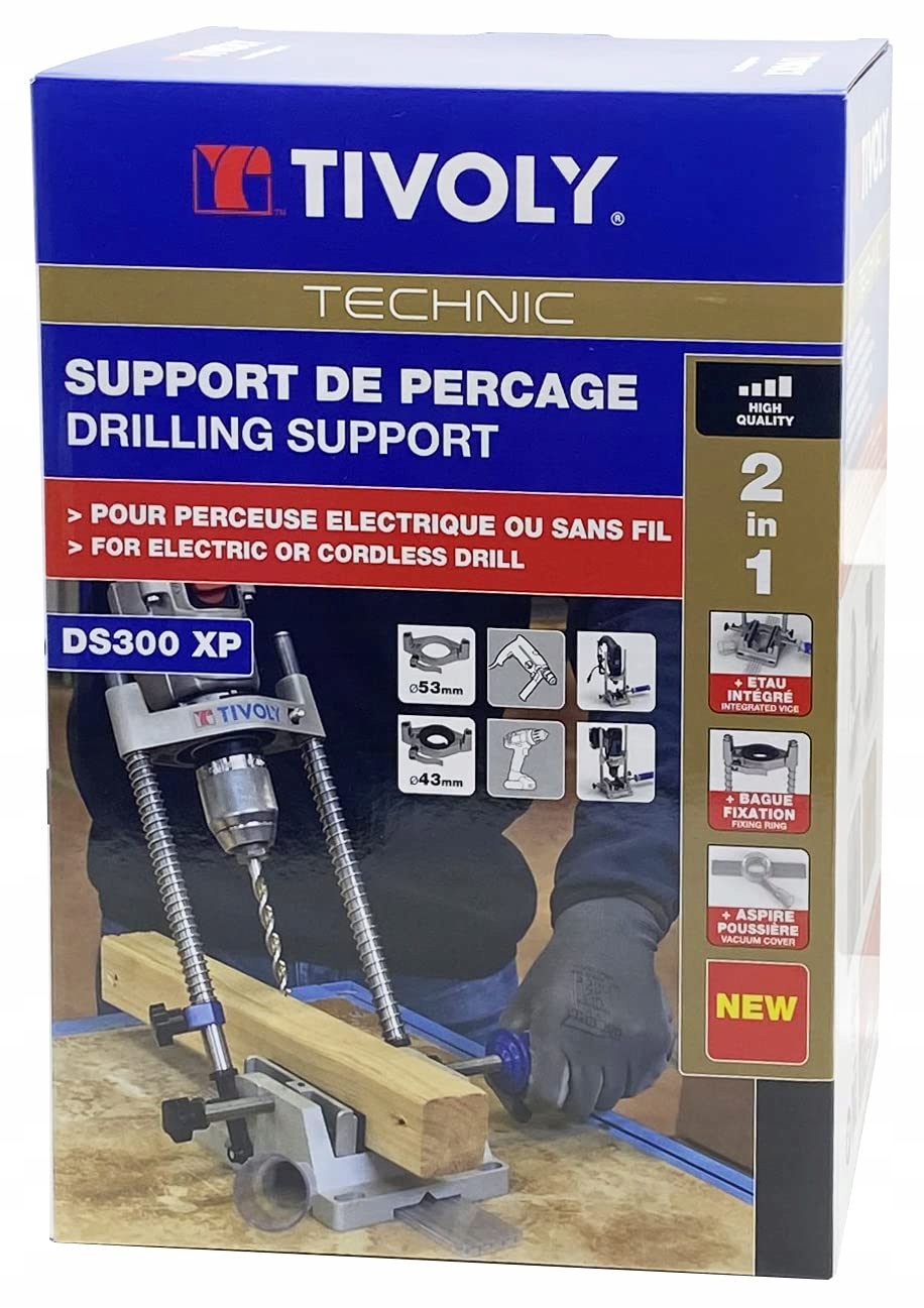 - назва товару: Tivoly 11110220007 Кронштейн для свердла для затискного свердла від 43 мм до 53 мм, система швидкого затиску, регульований кут свердління, затискні лещата та вбудована система всмоктування< /li>