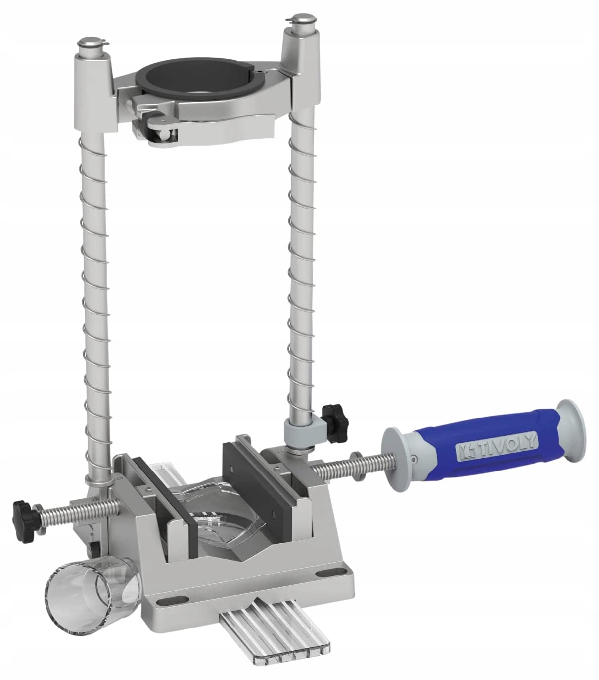 Tivoly 11110220007 Кронштейн для свердла для затискного свердла від 43 мм до 53 мм, система швидкого затиску, регульований кут свердління, затискні лещата та вбудована система всмоктування