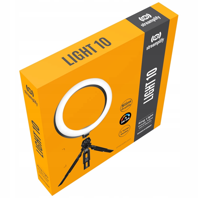 Streamplify Light 10 — це легкий і універсальний кільцевий ліхтар, який забезпечує оптимальне освітлення за будь-яких умов, що робить його ідеальним для потокового передавання, ведення відеоблогів, фотографії та відеозапису. Лампа має 3 режими колірної температури і 10 рівнів яскравості, що дозволяє регулювати освітлення відповідно до ваших поточних потреб. Ніжне світло зробить ваш колір обличчя та очі сяючими. Окрім автентичного та яскравого зображення обличчя, Light 10 також підсвічує фон.