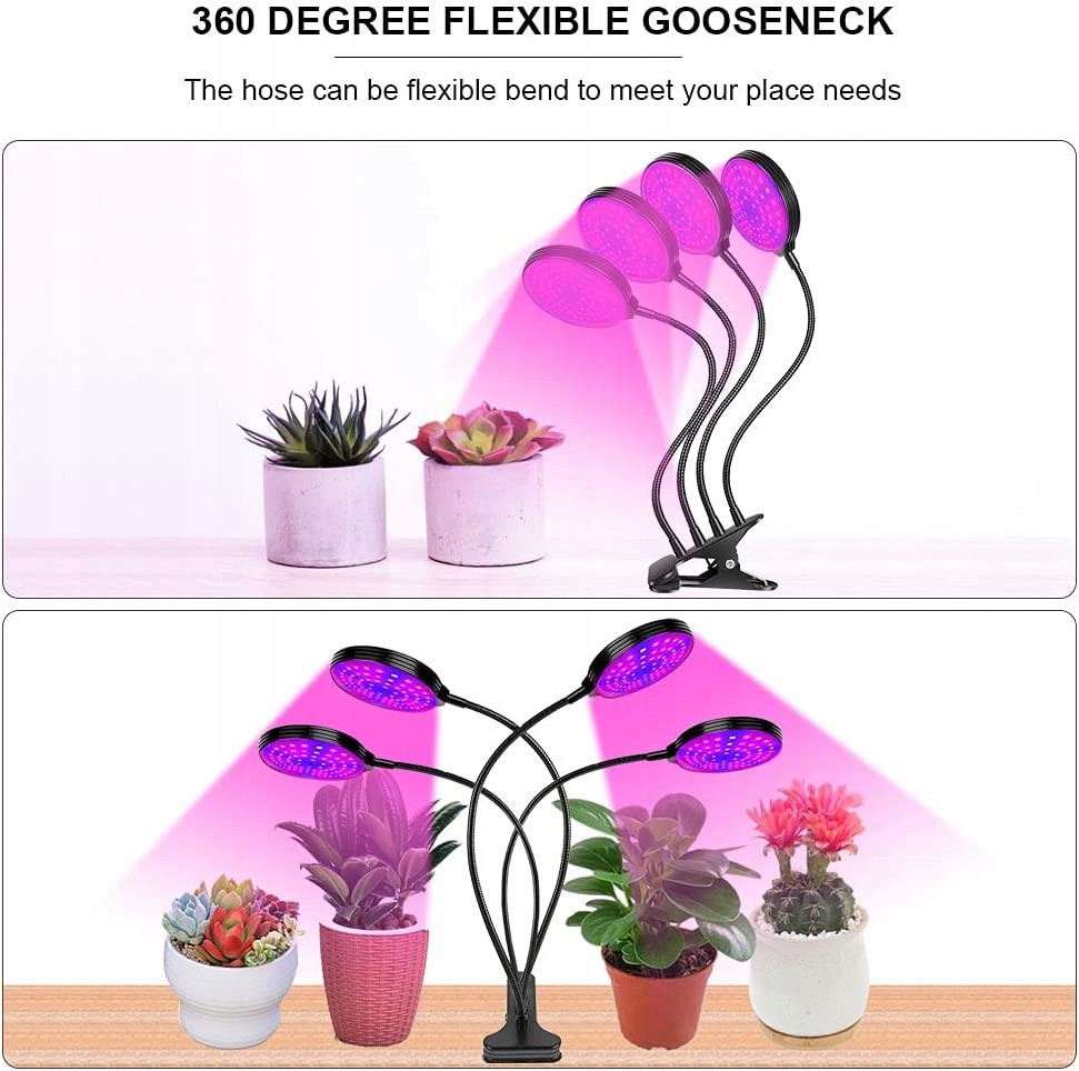 Регульована гусяча шия: гнучка гусяча шия на 360 градусів і нековзний затискач. Ви можете гнучко регулювати відстань і кут між лампою та рослиною, щоб забезпечити широкий діапазон освітлення відповідно до потреб рослини.