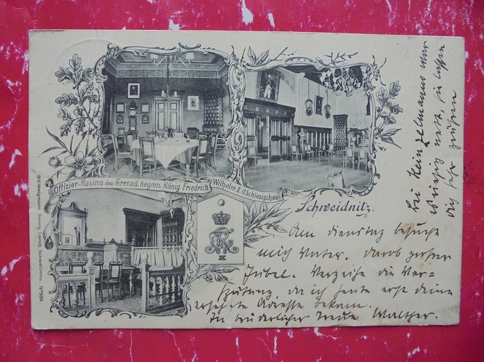 ŚWIDNICA SCHWEIDNITZ ŚWIEBODZICE WAŁBRZYCH ОФІЦЕРСЬКЕ КАЗИНО ГРЕНАДЕРСЬКОГО ПОЛКУ З ОБІГУ 14/06/1908 СТАН -Дуже добрий стан, ГАРНА ЛИСТІВКА ЕПОХИ МОЖЛИВІСТЬ ОПЛАТИ ТРАДИЦІЙНИМ ПЕРЕКАЗОМ БАНКУ ŚLĄSKI УВАГА ЛИСТІВКИ МАЛОГО ФОРМАТУ