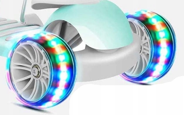 Світлодіодні колеса: 3 кольорові світлодіодні колеса, що світяться. Під час їзди на самокаті колеса світяться широкою гамою миготливих кольорів і надають їзді оригінальну та веселу нотку. Дітям подобається ця особливість, яка робить самокат унікальним. Це подарує вашій дитині години розваг.