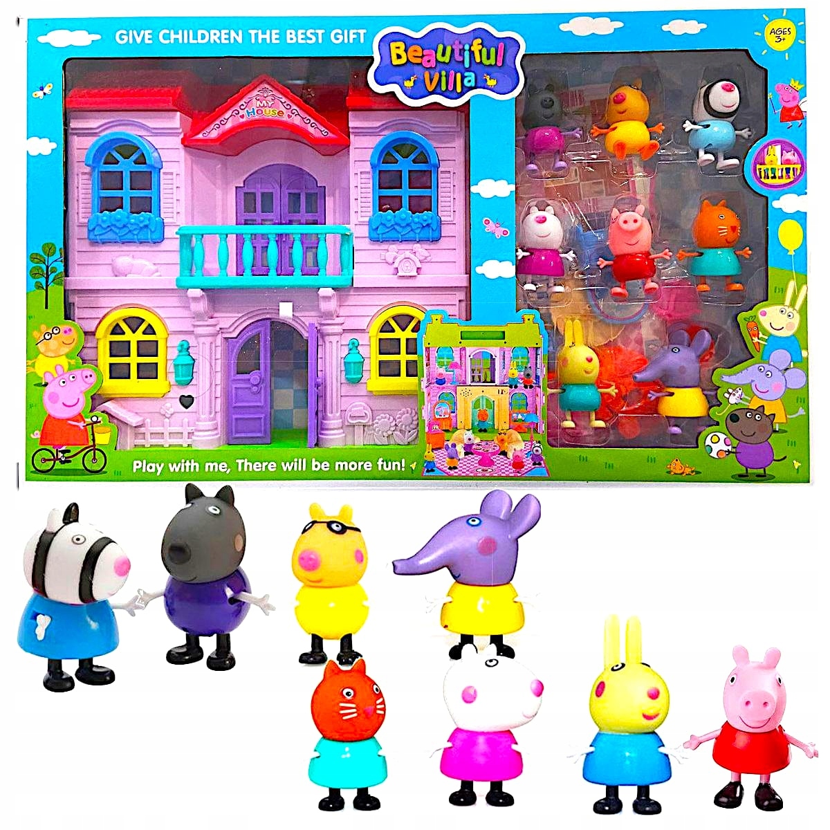 "Peppa Pig" - це казка, яку люблять усі діти. Пеппа - маленька свиня в червоній сукні. Вона химерна, цікава, дуже геніальна і любить пригоди. Свиня любить шоколадне печиво, дні народження та велосипедні поїздки та пікніки. Однак він найбільше любить свою грязь і стрибає під дощем. Винайдіть власні історії з Peppa, використовуючи цей чарівний набір фігурок. 4