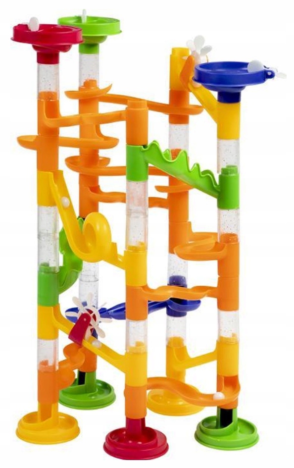 Побудуйте доріжку, а потім приведіть кульки в рух, щоб вони котилися по визначеній доріжці. Є багато комбінацій для створення траси - єдине обмеження - ваша уява! Відпустіть це і створіть мегаструктуру. Іграшка стимулює творчі здібності, допомагає зрозуміти та проілюструвати причинно-наслідкові реакції.