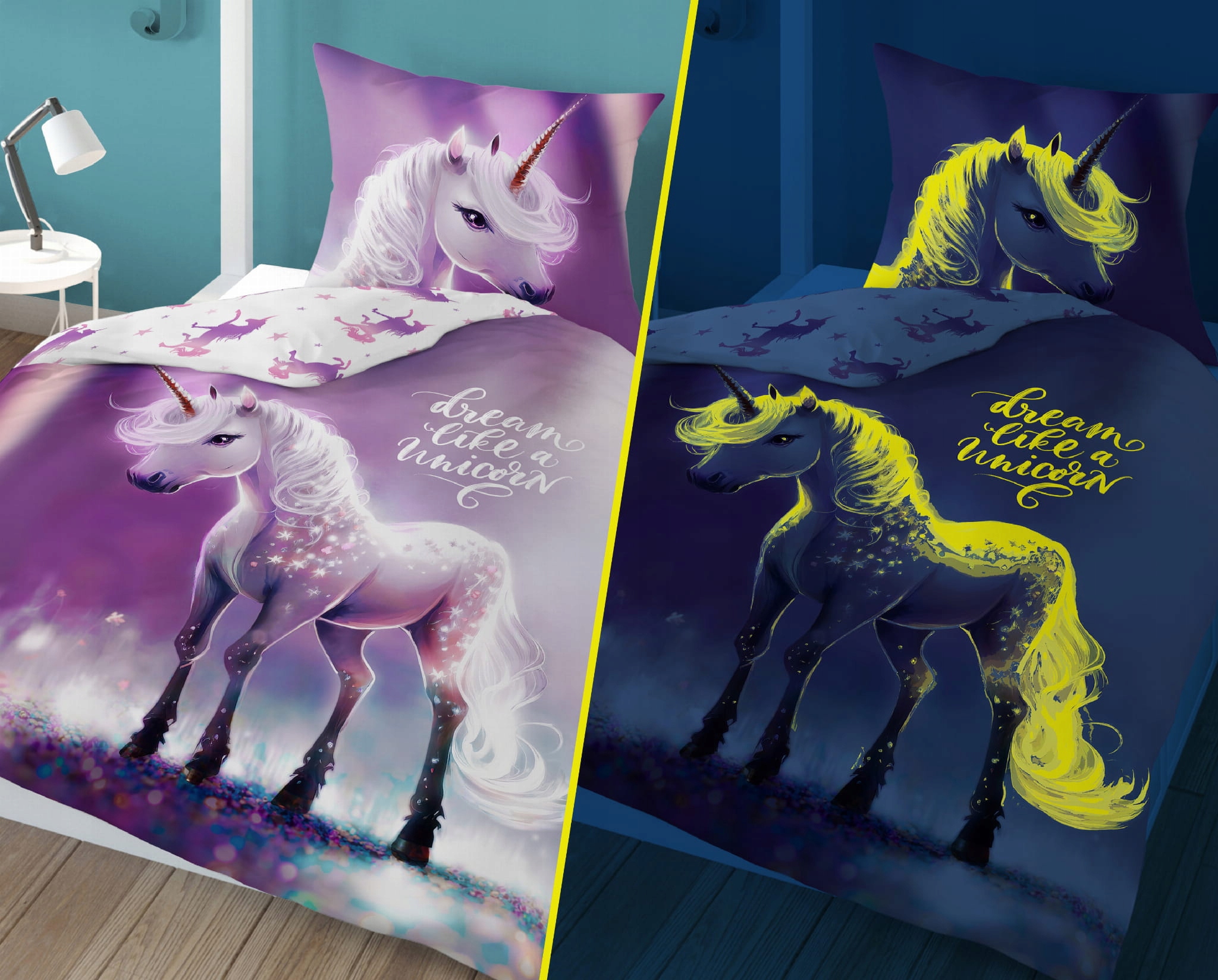 Світиться в темряві постільна білизна 140х200 Єдиноріг