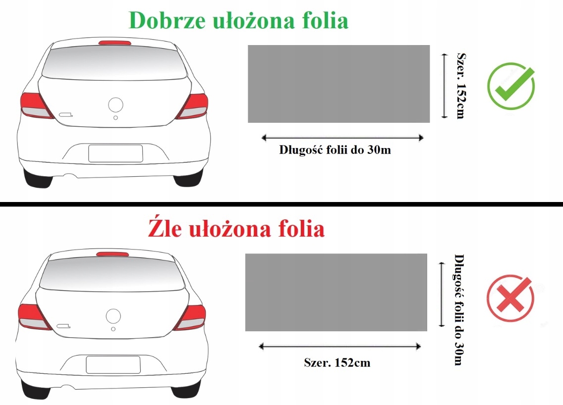Сучасні автомобілі мають вікна неправильної форми Щоб фольга належним чином скоротилася під дією тепла, її слід розташувати в правильному напрямку (термічна усадка тільки по довжині фольги). У галереї є фото того, як має розташовуватися фольга щодо скла.