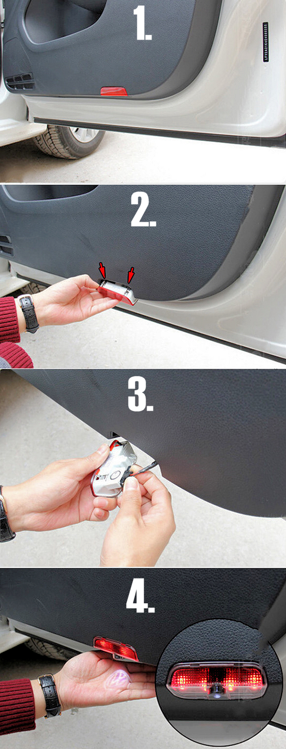 Предметом пропозиції є дві вітальні лампи/проектори для Volkswagen, які ми розміщуємо замість старої лампи внизу дверей.