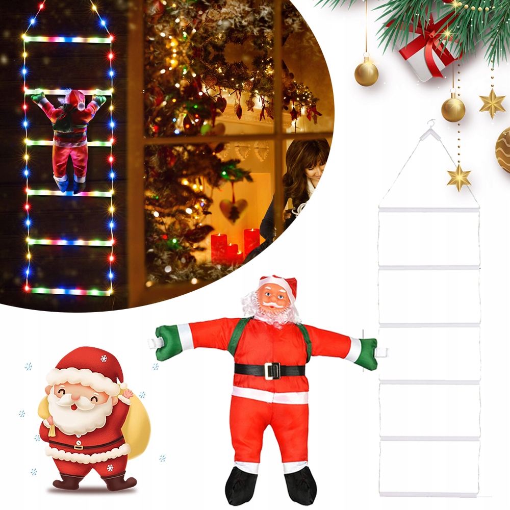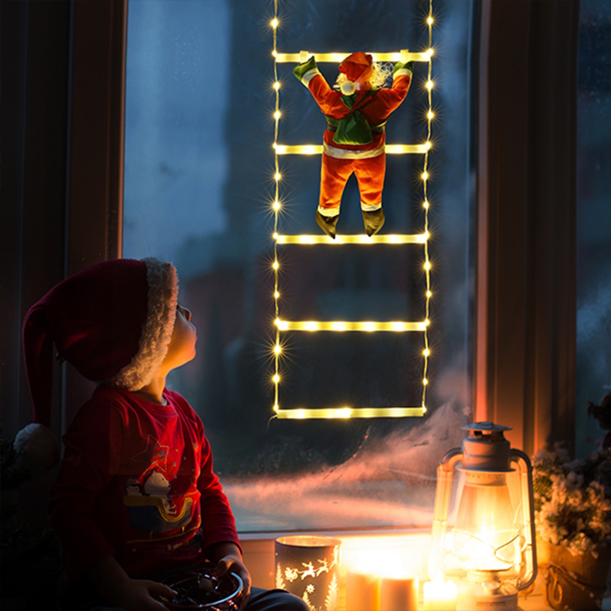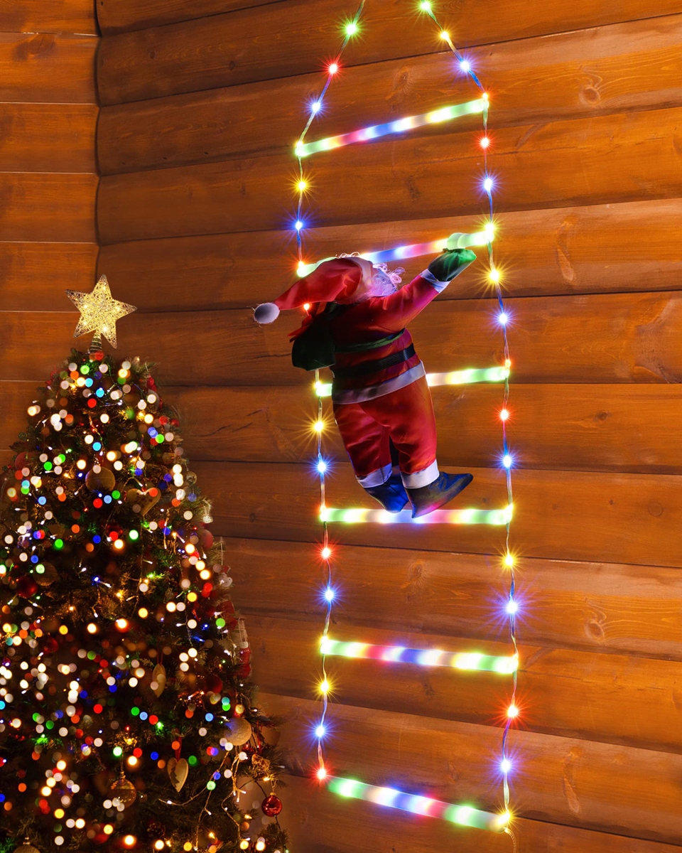 🎅🎅🎅【Різдвяні прикраси】: Різдвяний ланцюжок Санти складається з драбини довжиною 75 см з вогнями та знімного Санта-Клауса, який приносить різдвяний настрій у ваш дім і поширює радість свято.