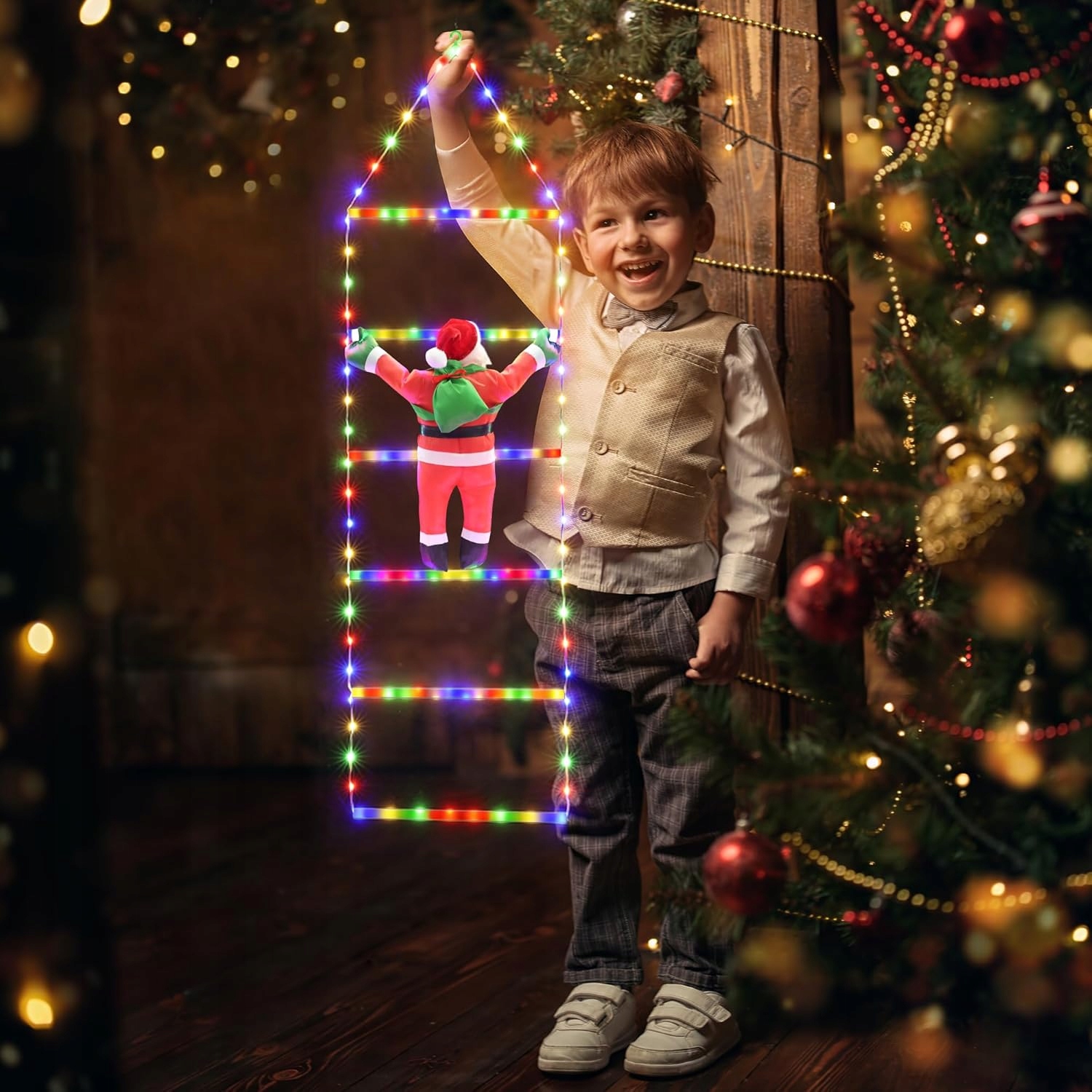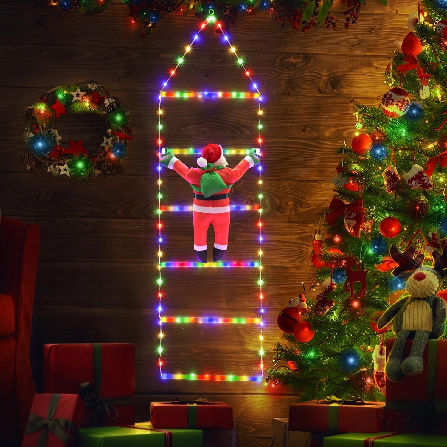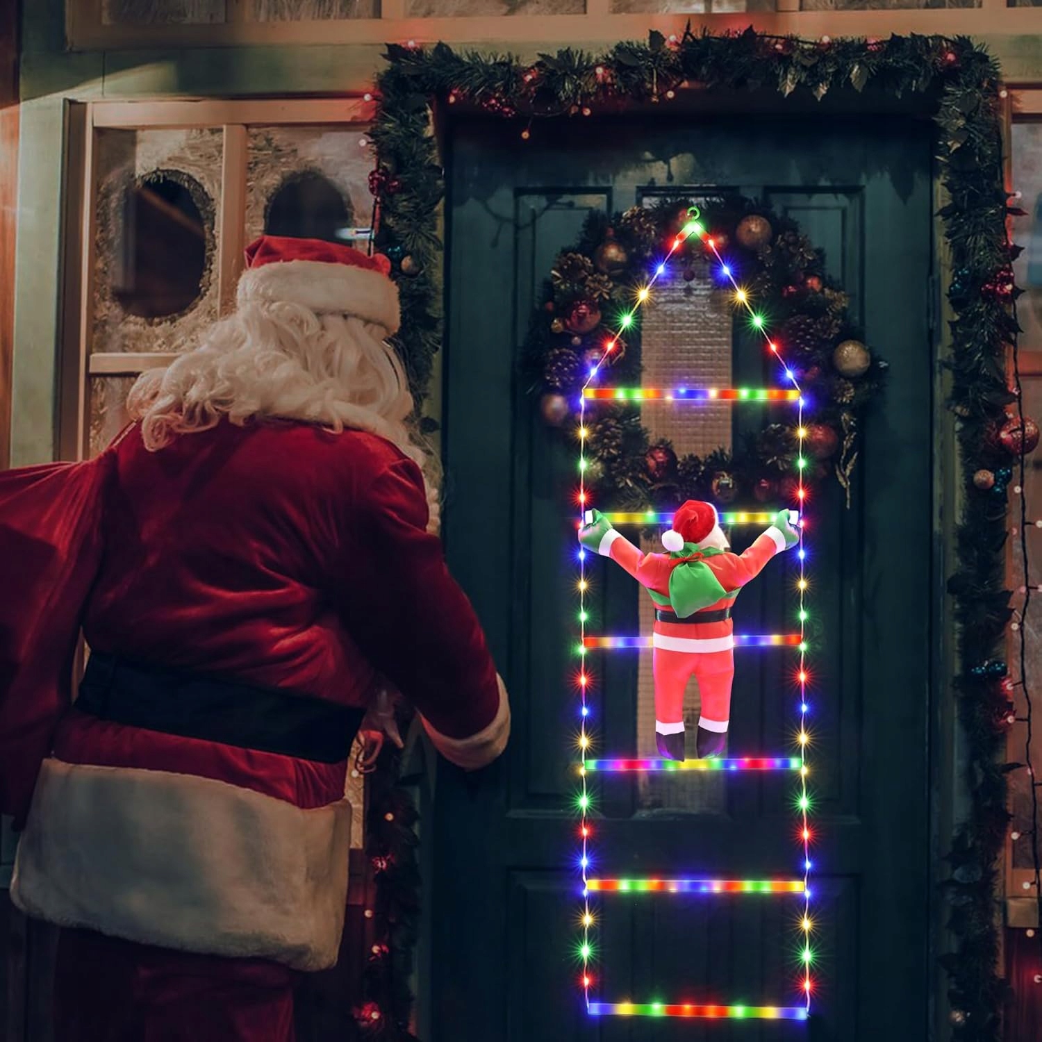 🎅🎅🎅【Різдвяні прикраси】: Різдвяний ланцюжок Санти складається з драбини довжиною 75 см з вогнями та знімного Санта-Клауса, який приносить різдвяний настрій у ваш дім і поширює радість свято.