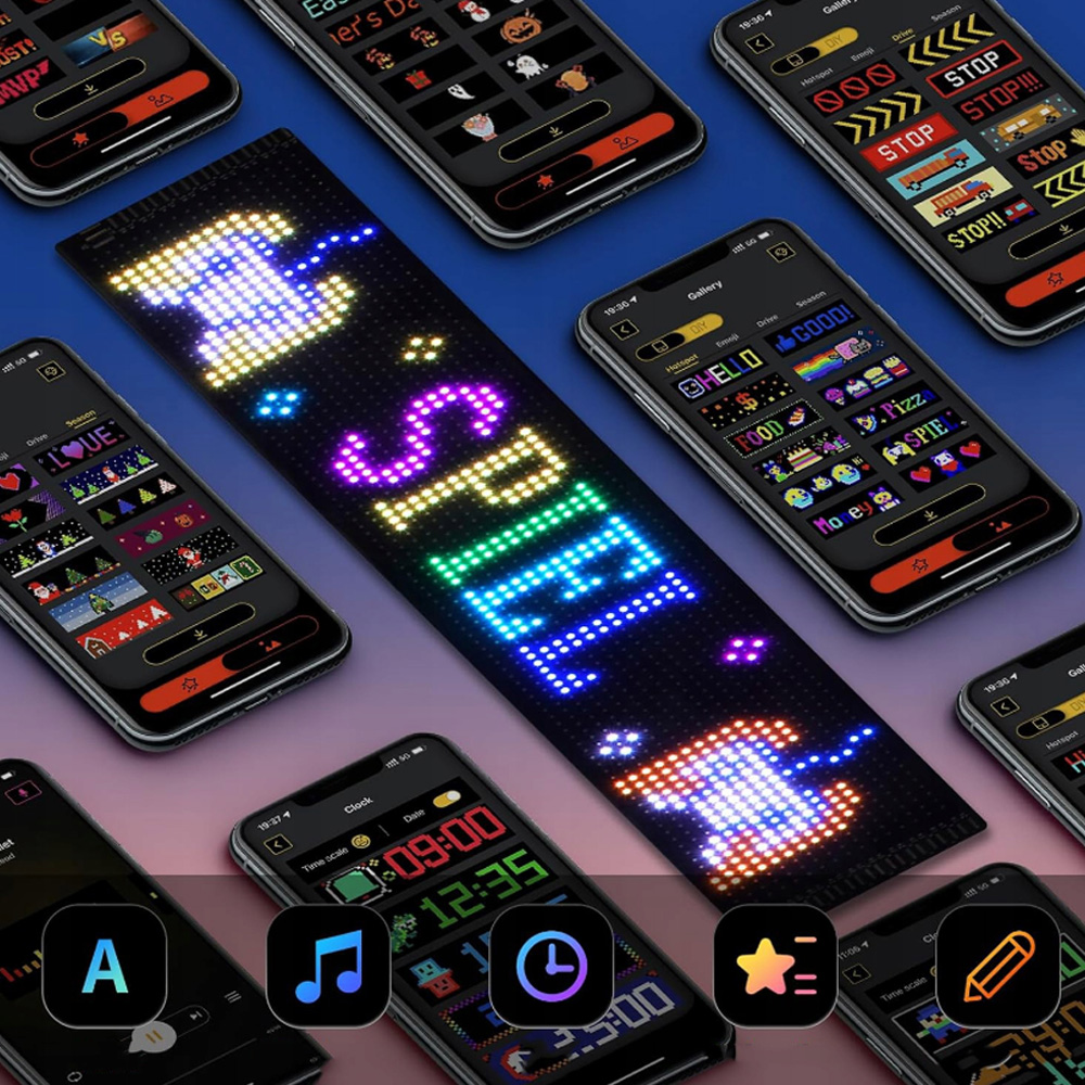 легко завантажити, а також можна використовувати без реєстрації. Після підключення через Bluetooth просто використовуйте готові зображення або анімації. Але також можна написати текст чи дизайн. Програмування проводиться за допомогою програми, його можна підтримувати майже інтуїтивно. Таким чином, ви можете встановити різні режими, вибрати напис або налаштувати.