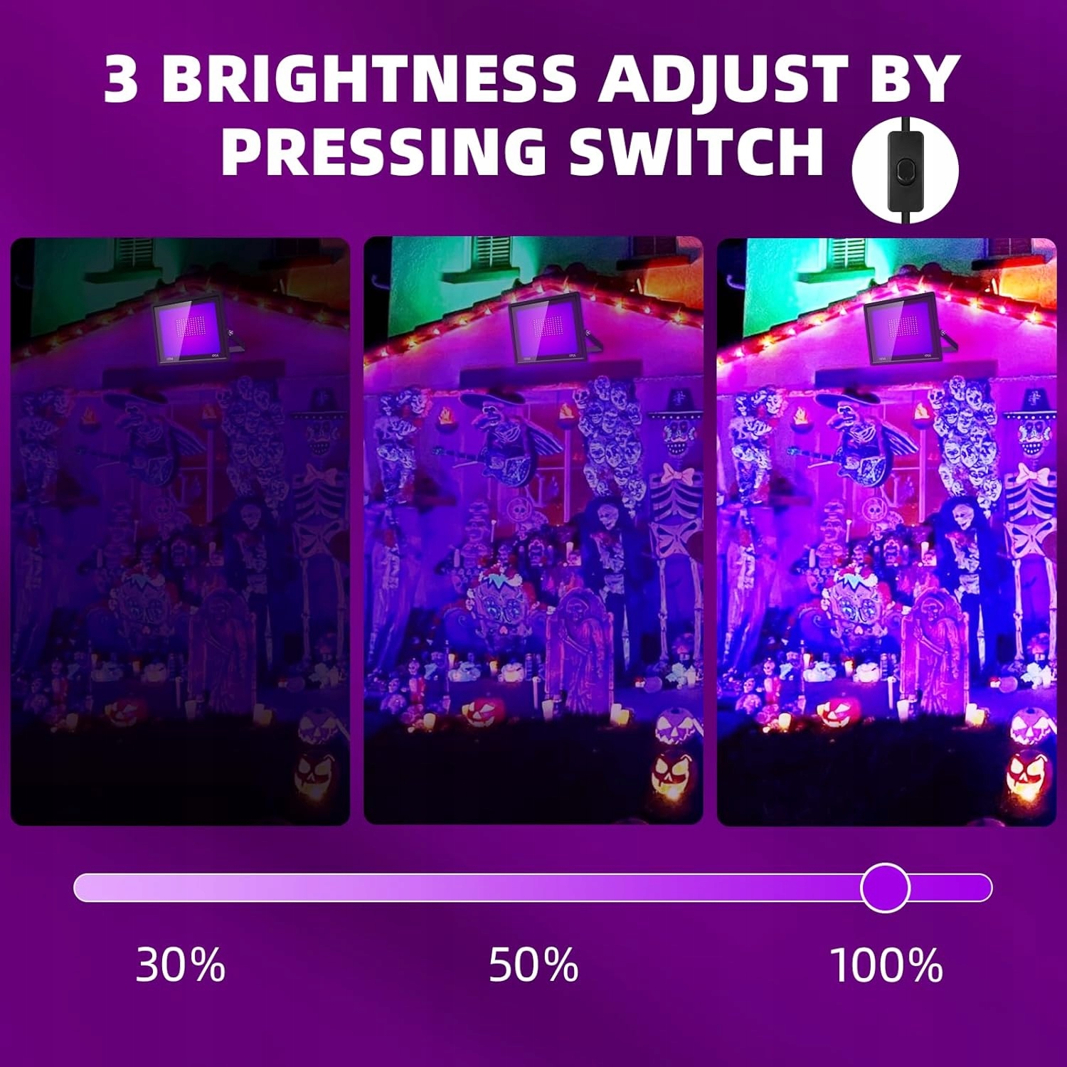 Viugreum 3 Світлодіодне Різдвяне УФ Чорне світло 100 Вт Чорна світлова лампа Зовнішня фара IP66 Водонепроникна фара з 1,5 м жилового кабелю плагіну Фара на різдвяному барні саду