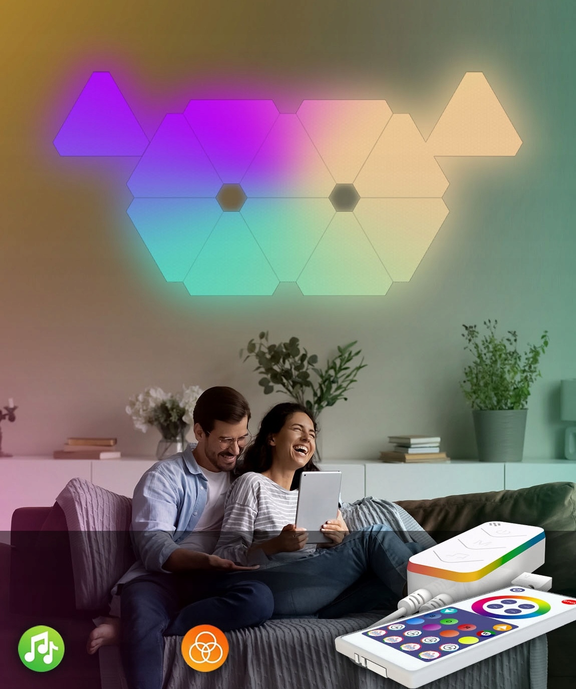 ✅ Налаштовані світлодіодні панелі: 6 трикутних світлових панелей можна встановити у будь -якій формі та запропонувати 16 мільйонів кольорів, , щоб створити унікальну атмосферу у вітальні, спальні чи ігровому залі. Будь -яка плоска поверхня за допомогою прикріплених самостійних прокладок, завдяки якому вона є ідеальним доповненням до будь -якого будинку, події чи події.