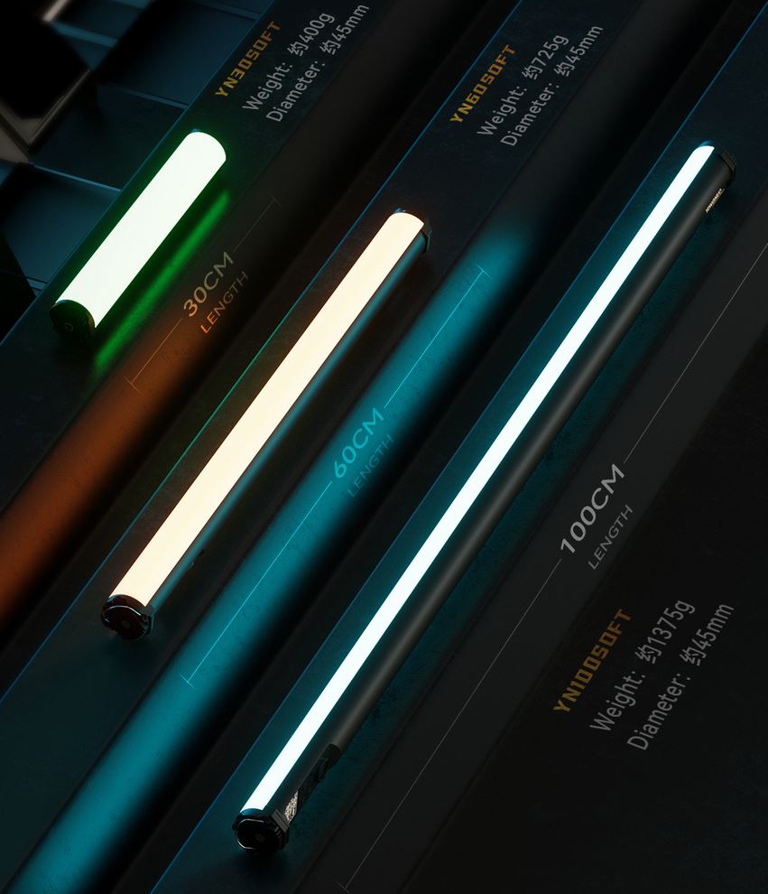 Yongnuo YN60 Soft - RGB, WB (2000 K - 10000 K) — багатоцільова світлодіодна лампа у формі трубки. Пристрій ідеально підходить для фотозйомки продуктів, відеоблогів, прямих трансляцій і малювання. зі світлом. Цей унікальний світловий меч пропонує широкий діапазон регулювання колірної температури світла (від 2000 K до 10 000 K) і дозволяє отримати до 36 000 різних кольорів, доступних у колірному просторі HSI. Творці відео неодмінно оцінять 31 попередньо встановлений спецефект. Монтажний кронштейн, що входить в комплект, дозволить зручно підключити пристрій за допомогою різьби 1/4". Модель YN60 Soft також підтримує безкоштовний мобільний додаток YONGNUO (iOS/Android), який дозволить дистанційно керувати та працювати в межах більшої набір ламп.
