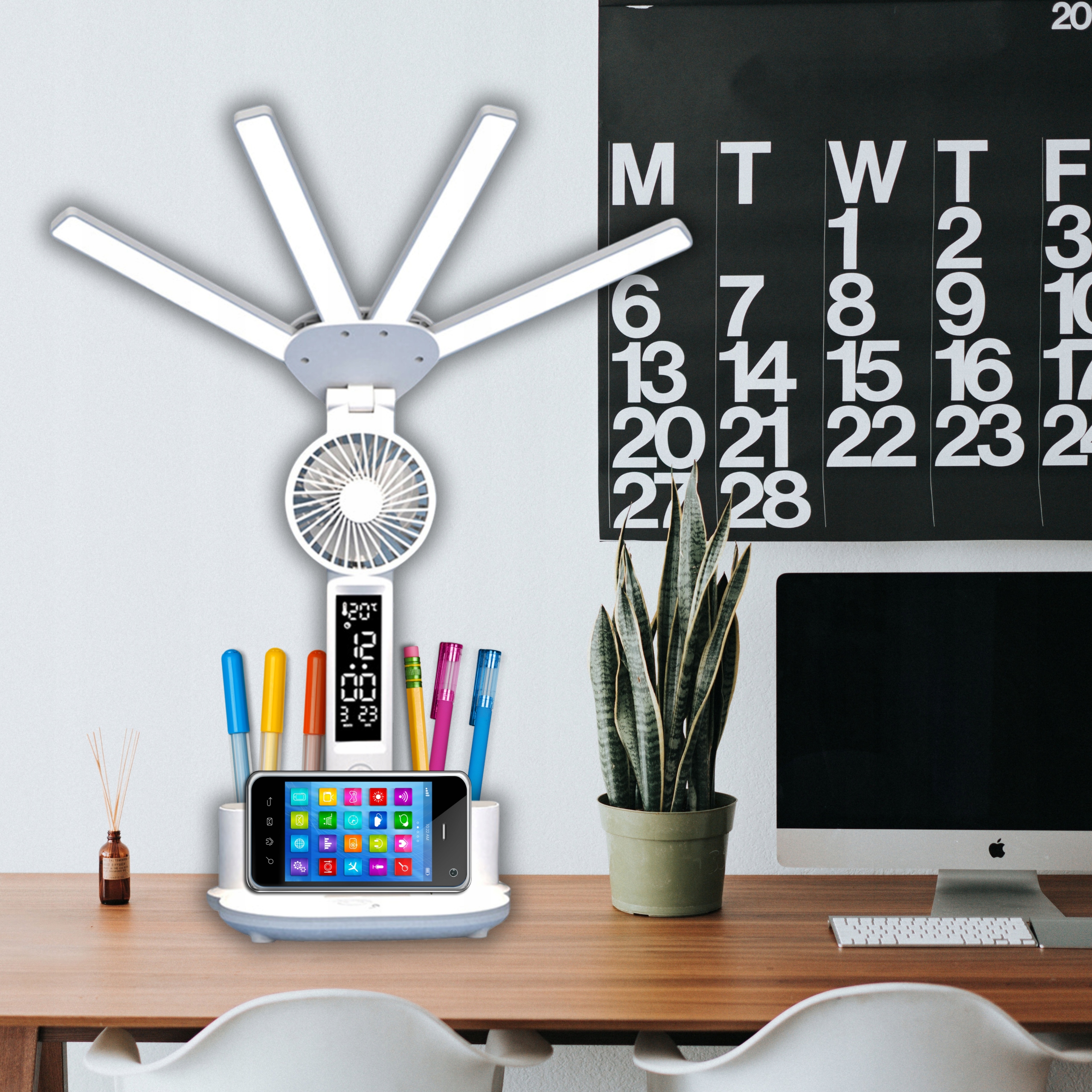 СВІТЛОДІОДНА НАСТІЛЬНА ЛАМПА З ДИСПЛЕЄМ ГОДИННИК ОРГАНІЗАТОР TEMP ВЕНТИЛЯТОР ДАТА 7в1
