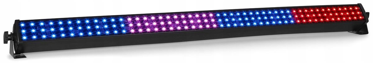 Барвистий світлодіодний промінь LCB144 від бренду BeamZ має аж 144 світлодіоди SMD RGB. Пристрій розділений на 8 різних секцій, якими можна вільно керувати. Кожен з них має можливість задавати кольори RGB в режимі DMX. Пристрій має 3 попередньо запрограмовані програми і функцію управління звуком. Автоматичний режим має 16 попередньо завантажених програм, якими ми можемо скористатися або створити власну суміш кольорів.