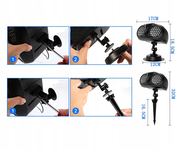 ❄️❄️ Проектор постачається зі стовпом для трави та внутрішньою основою, яку можна прикрутити до стіни чи газону або розмістити безпосередньо на твердій поверхні. Довгий кіл можна вбити в землю на городі чи у дворі. Круглу основу тримача можна поставити на тверду поверхню або закріпити на стіні за допомогою шурупів. Головка проектора регулюється на 270°, що дозволяє легко направляти світло в приміщенні або на вулиці. У комплект входить 5-метровий кабель живлення.