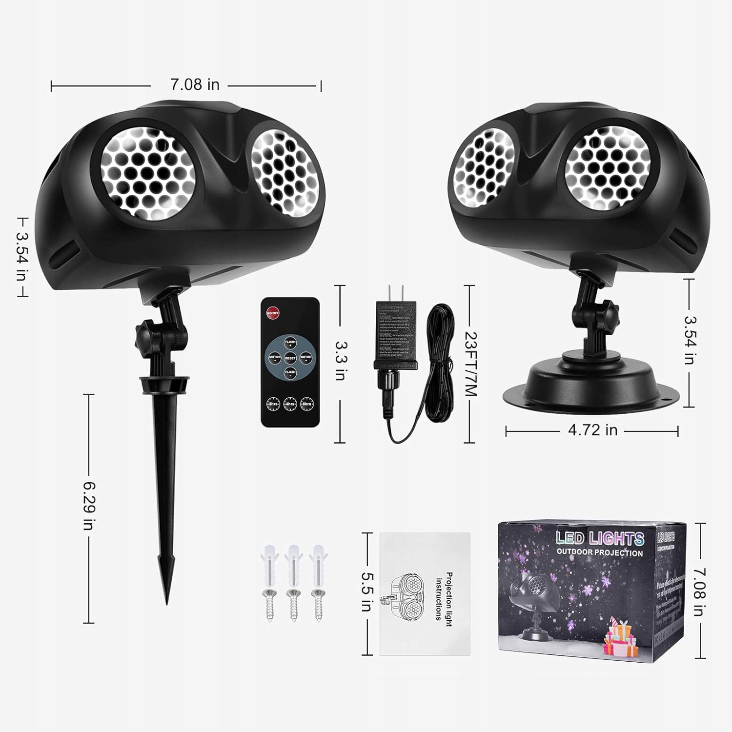 ❄️💧Наше вуличне світлодіодне освітлення є повністю водонепроникним, має клас захисту IP65 (корпус лампи) та IP44 (вилка), що гарантує роботу при температурах від -20°C до 50°C (не занурювати безпосередньо у воду). Ці святкові проектори створюють приголомшливі ефекти сніжинок і точок, що робить їх ідеальними для Різдва, весіль, вечірок, днів народжень, Дня подяки та Нового року. Вони ідеально підходять для дому, клубів, танцювальних залів і концертів.