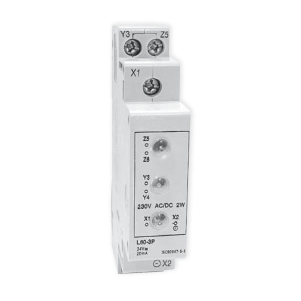 Сигнальна лампа використовується для оптичної сигналізації про наявність напруги в трифазній мережі. Про наявність напруги в фазі сигналізує загоряння світлодіодної лампи, підключеної до ланцюга цієї фази. Модуль встановлюється на стандартну рейку TH-35. Лампи різних кольорів.