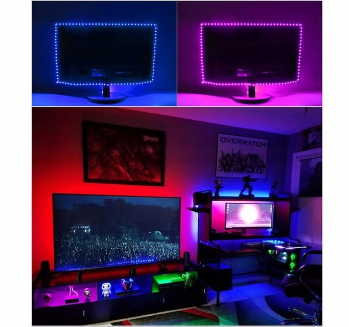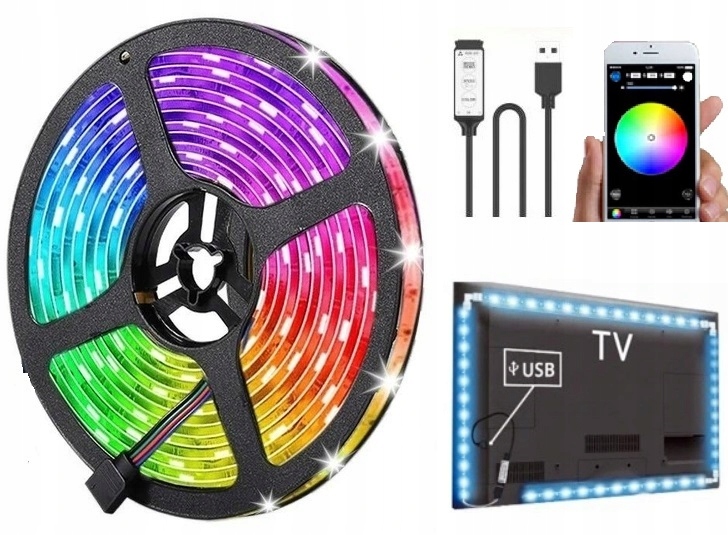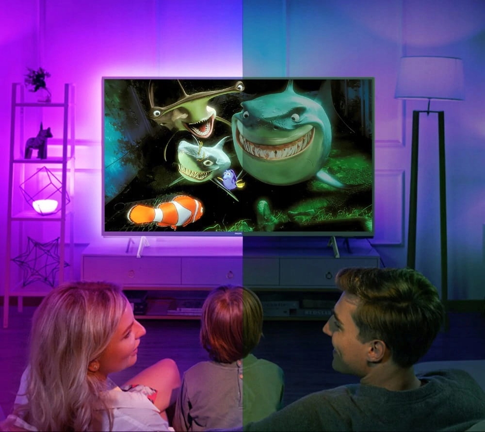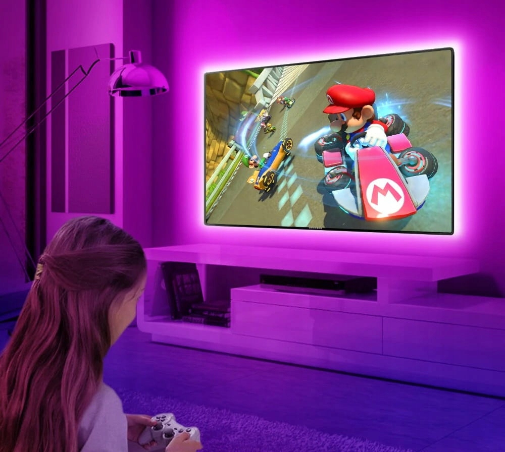 Світлодіодна стрічка для освітлення телевізора, комп’ютера, RTV обладнання, меблів, стін тощо. Стрічка створить дивовижну атмосферу в кімнаті завдяки ефекту «ambiciouslight». Чудовий візуальний ефект для сучасного інтер'єру. Телевізор з підсвічуванням не напружує очі під час перегляду, тому немає необхідності включати додаткове світло. Стрічка використовується як декоративне освітлення. Контролер має різноманітні програми, які створять ідеальну атмосферу в будь-якій кімнаті.