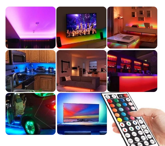 ✅ Різнокольорова світлодіодна стрічка 12V довжиною 5 м + пульт з багатьма програмами
