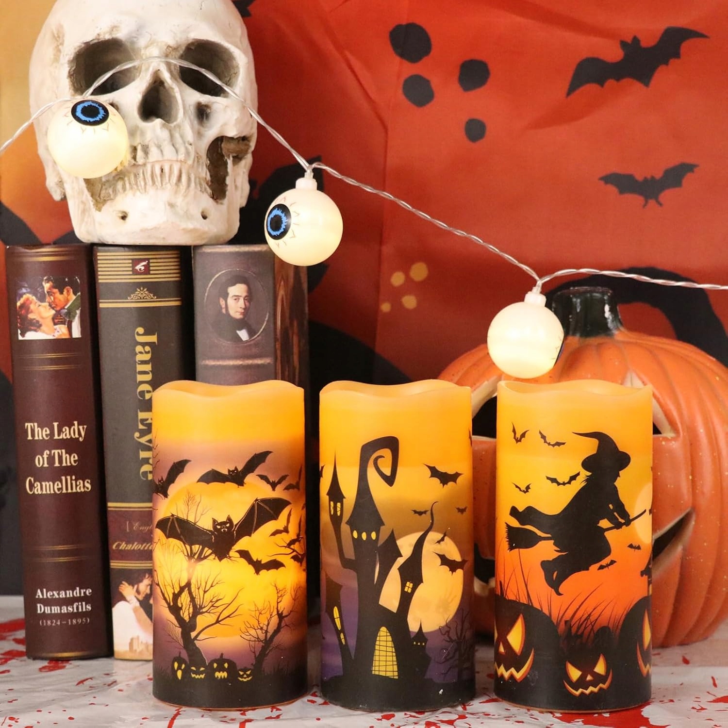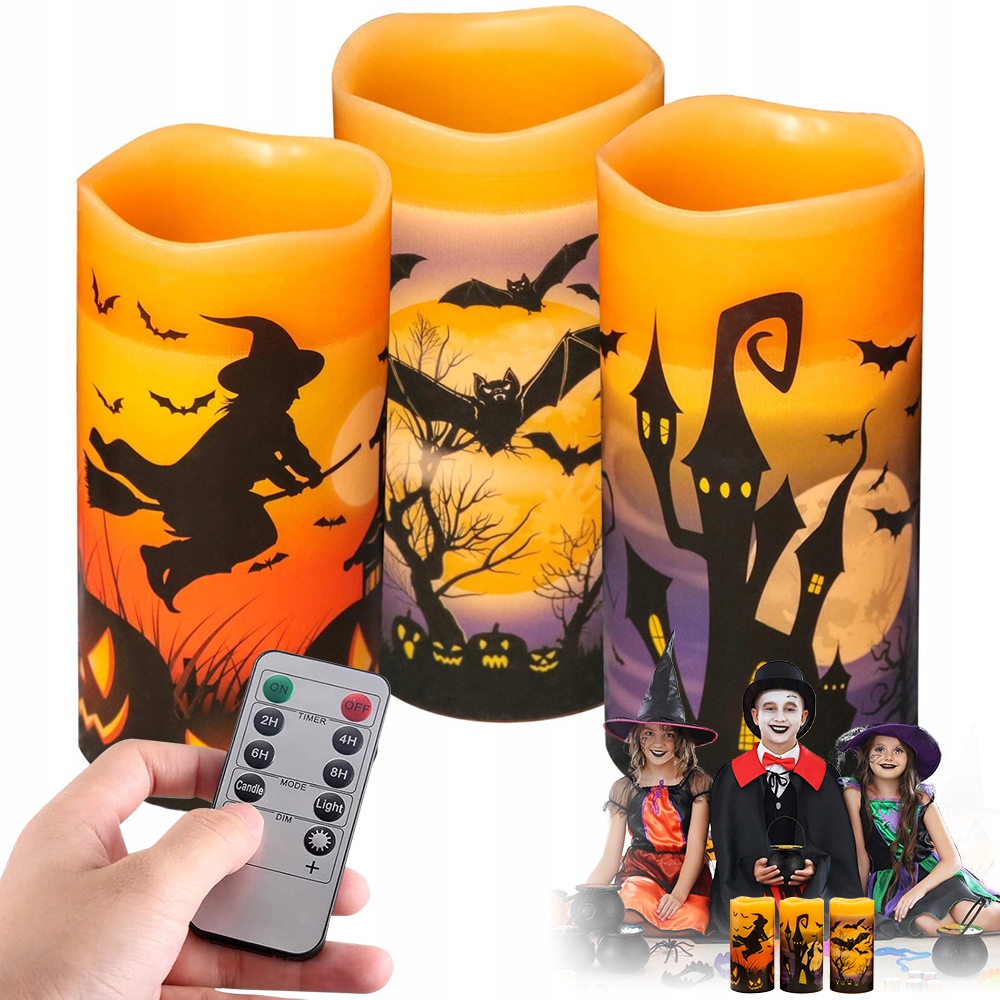 🏡 світлодіодна свічка з різними елементами Хеллоуїна, мерехтливим жовтим світлом та функцією таймера ›