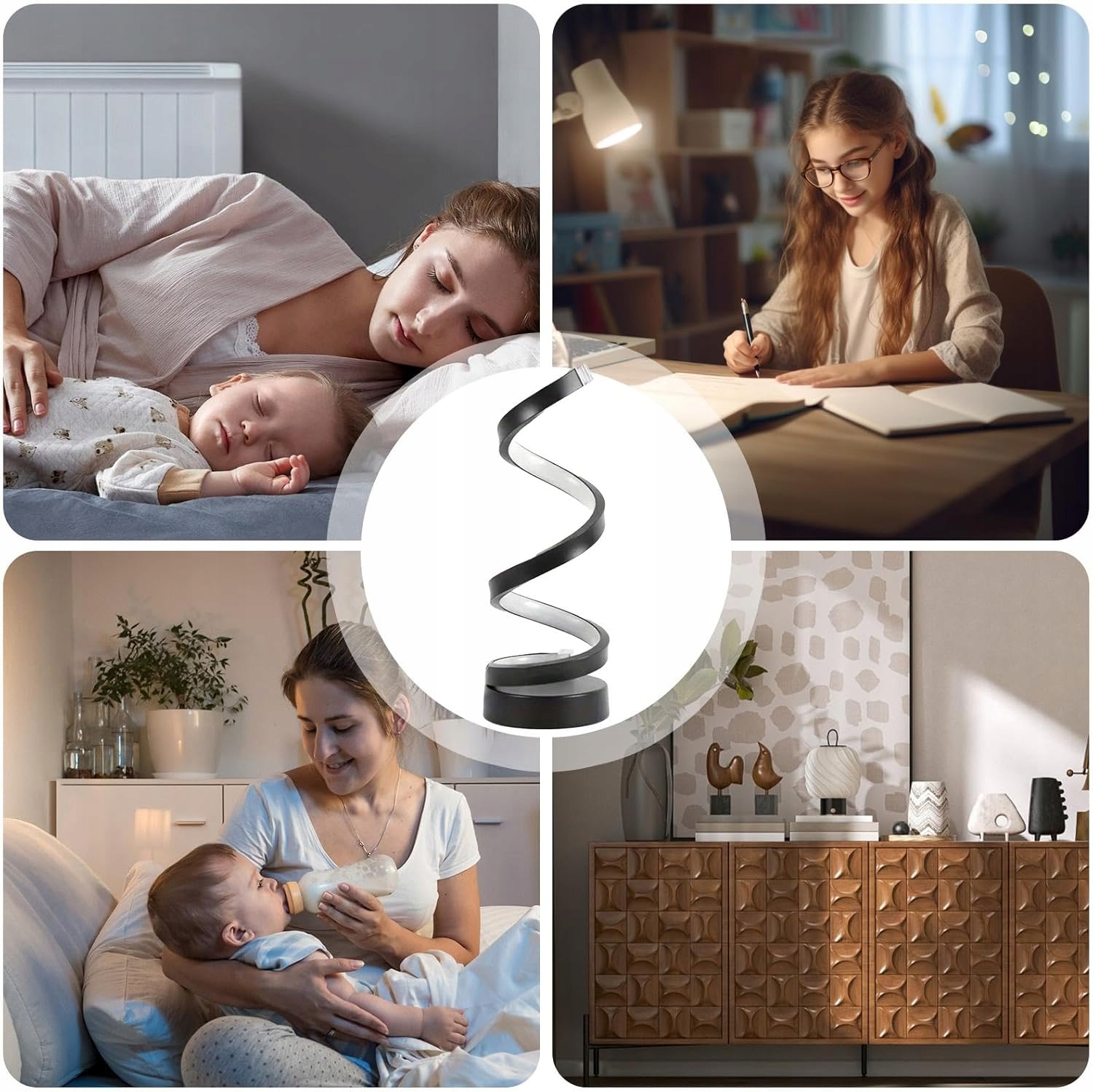 - ✔ 【Елегантний спіральний дизайн】 Елегантні спіральні лінії показують мінімалістичну та модну мистецьку красу, що також дозволяє уникати прямого освітлення та пошкодження очей. Помістіть настільну лампу у свою вітальню та спальні, а її унікальна форма додасть до вашої кімнати нові візуальні ефекти.