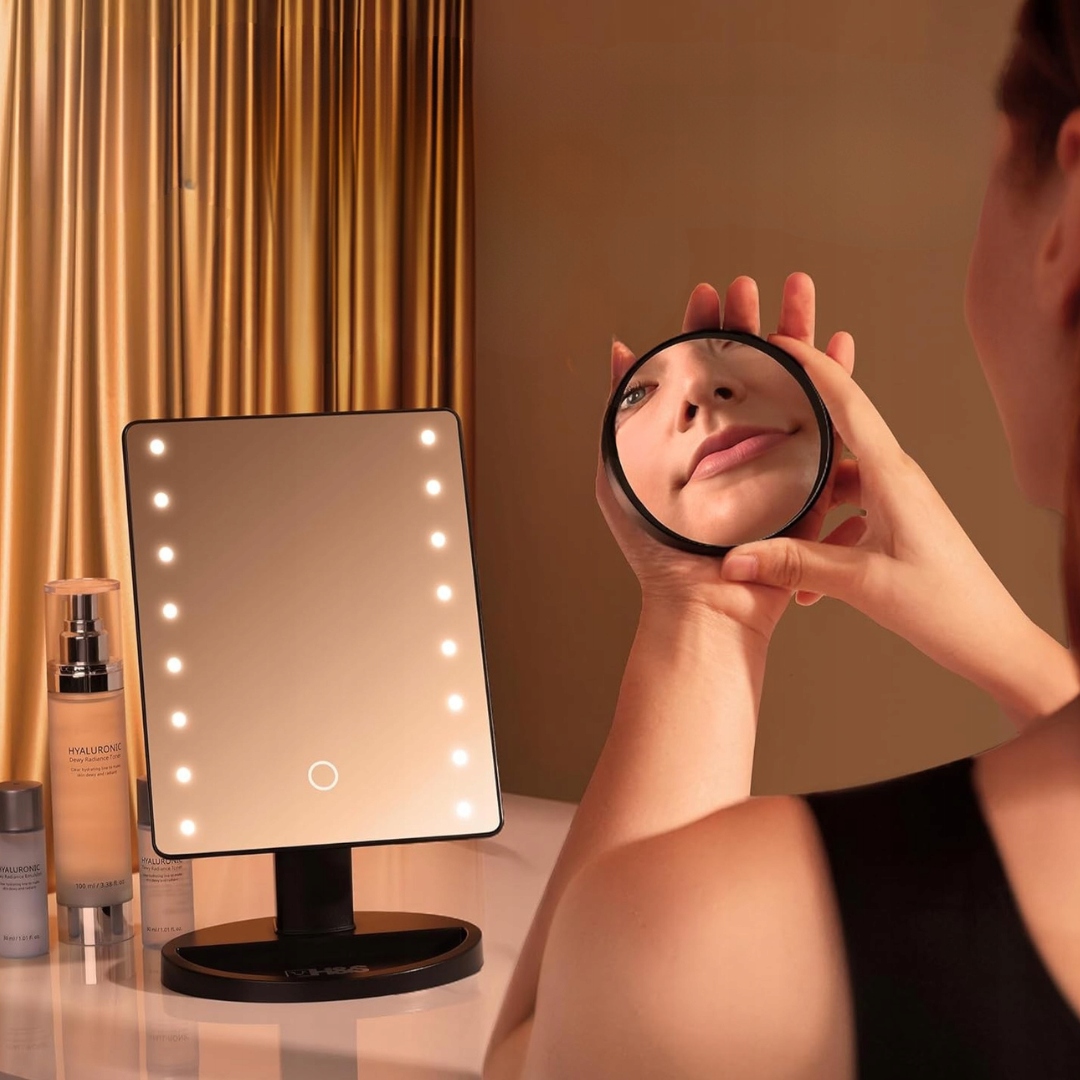 Світлодіодне косметичне дзеркало з 10-кратним збільшенням – регульоване та стильне