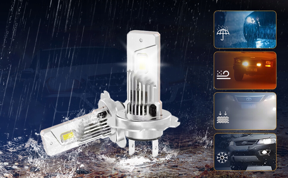 інтелектуальний , двосторонній чіп, керований тепловідником, високою ефективністю, відсутність перешкод радіо FM/CB та відсутності ефекту спалювання, як у випадку ксенону та традиційних галогенних цибулин.