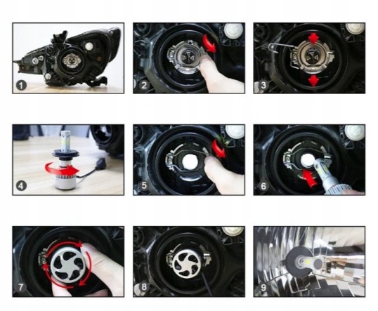 Компактний розмір набору, підходить для більшості фар. Для підключення замість оригінальних лампочок.