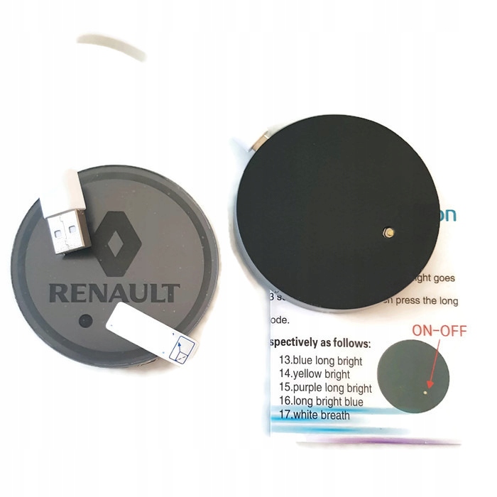 Набір із двох світлодіодних проекторів/планшетів із логотипом Renault, що автоматично вмикаються, для розміщення, наприклад, замість тримачів для напоїв у автомобілі.